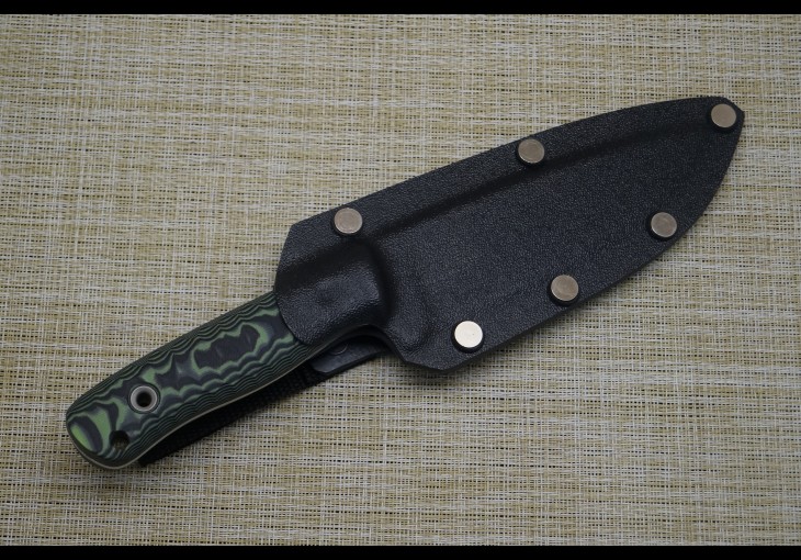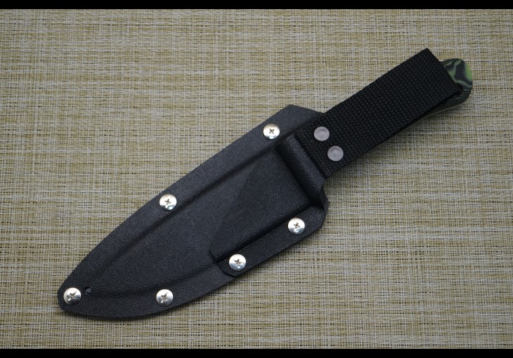 | Модификация: 278 | | Сталь: х12мф(кованая) | | Общая длина: 250мм. | | Длина клинка: 133мм. | | Ширина клинка: 36мм. | | Толщина клинка: 2,9мм. | | Покрытие: Полировка | | Рукоять: G-10(чёрно-салатовая-пескоструй) | | Ножны: Разборный чехол из кайдекса со свободным подвесом. |