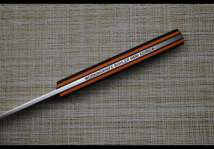 | Модификация: 98 | | Сталь: N690 (cryo) | | Общая длина: 190мм. | | Длина клинка: 86мм. | | Ширина клинка: 32мм. | | Толщина клинка: 3мм. | | Покрытие: Сатин | | Рукоять: G-10(чёрная с оранжевой проставкой-пескоструй) | | Ножны: Чехол из кайдекса со свободным подвесом. |