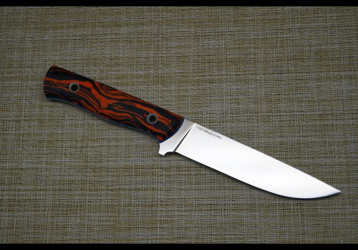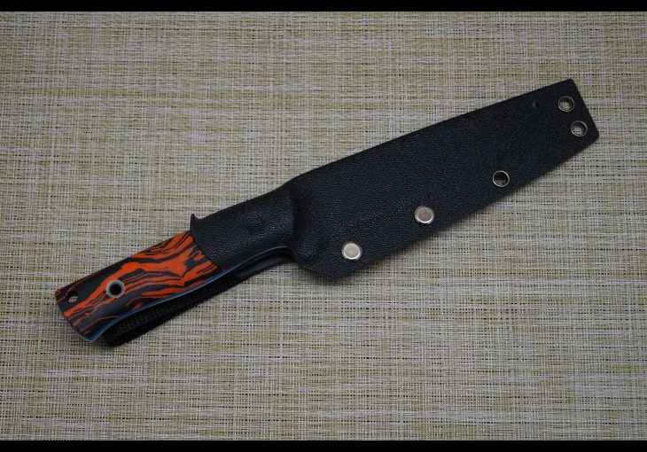 | Модификация: 1278 | | Сталь: 110х18МШД (кованная) | | Общая длина: 245мм. | | Длина клинка: 130мм. | | Ширина клинка: 27мм. | | Толщина клинка: 2,6мм. | | Покрытие: Полировка | | Рукоять: Микарта+G10 | | Ножны: Чехол из кайдекса со свободным подвесом. |