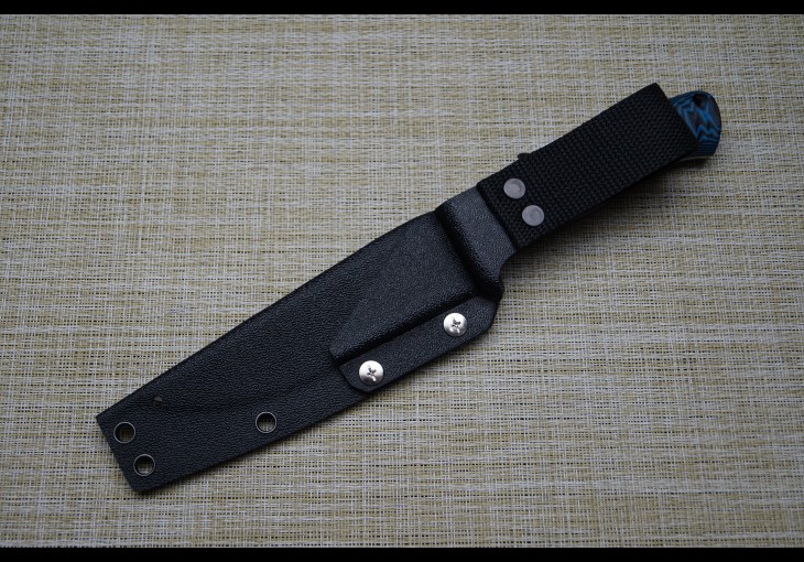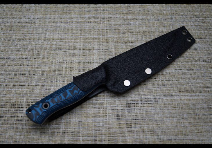 | Модификация: 279 | | Сталь: х12мф(кованая) | | Общая длина: 255мм. | | Длина клинка: 132мм. | | Ширина клинка: 30мм. | | Толщина клинка: 3,2мм. | | Покрытие: Полировка | | Рукоять: G-10(Чёрно-синяя-пескоструй) | | Ножны: Чехол из кайдекса со свободным подвесом. |