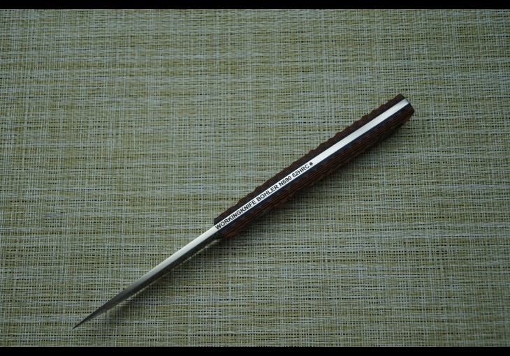 | Модификация: 294 | | Сталь: N690 (cryo) | | Общая длина: 195мм. | | Длина клинка: 84мм. | | Ширина клинка: 25мм. | | Толщина клинка: 3,1мм. | | Покрытие: Сатин | | Рукоять: G-10(чёрно-оранжевая с чёрной проставкой-пескоструй) | | Ножны: Чехол из кайдекса со свободным подвесом. |